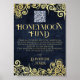Das wunderschöne, blaue Honeymoon Fund Poster lädt Ihre Gäste auf eine perfekte Art und Weise zu Ihrem Traumziel Flitterwochen ein! Exquisit mit poisierter Typografie und lustrosenen goldenen Wirbel dekoriert, ist dieses Design eine perfekte Mischung aus Charme und Eleganz.