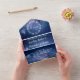 Navy Blau, Galaxie, Himmelfahrt, Konstellation, minimale, schicke, elegante, rustikale, moderne gefaltete Ehe, QR-Code Hochzeit alle in einer Einladung. Das dreifache, budgetäre Set. Sie können es mit Ihren eigenen Daten personalisiert.