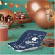 Diese moderne marineblau-weiße Papierplatte zeigt klassische Typografie Ihres High School- oder Uni-Namens für die Klasse von 2025. Passen Sie mit Ihrem geschlossen Jahr unter der schicken handgeschriebenen Drehbuch und schwarzen Graduiertenkappe für ein großartiges personalisiertes Graduiertendekor.