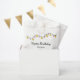 Das Tropical Beach Birthday Party-Begehrensack mit eleganten, mit Palmen verzierten Lichtern auf weißem Hintergrund. Mit der anpassbaren Typografie-Schrift fügen Sie Ihre eigenen Informationen hinzu. Ein guter Weg, um Ihnen zu sagen, danke an Ihre Party Gäste.