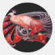 ELEGANTER PEACOCK IN ROT, SCHWARZ RUNDER AUFKLEBER