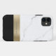 Modernes iPhone Gehäuse mit goldenem Metallstreifen, schwarz-weißem Marmorhintergrund mit Imitaten. Sie können Ihren Namen oder einen anderen Text hinzufügen.