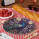 Entspannen Sie Ihre Ansammlungen mit diesen eleganten Tellern aus Papier, die mit einem atemberaubenden Pfauendesign auf luxuriösem lila blumigen Hintergrund inspiriert von William Morris. Diese Teller sind ideal für besondere Anlässe oder den stilvollen Alltag und sorgen für Eleganz und Charme in der Tischumgebung und bieten den Komfort eines Einzel-Dinner.