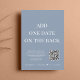 Stilvolles staubblaues Dekor oder private Hochzeitsankündigung und Empfang oder Feier Party Einladung. An der Vorderseite steht "Happily Ever After Party" in einer Mischung aus schlichter weißer Typografie und einem eleganten weißen Drehbuch mit Swashes, und Sie können Ihre Nachricht und Einladung personalisieren und Ihre Namen in einem signaturähnlichen Skript hinzufügen. Auf der Rückseite geben Sie Ihre Website-Adresse Hochzeit-URL, um einen QR-Code für die Gäste zu scannen, um alle Details und UAWG online und fügen Sie Ihre Vornamen und Hochzeit-und Empfang-Daten.