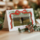 Eleganter Red Bow mit Greenery Foto Weihnachtskarte. Klicken Sie auf die Schaltfläche "Personalisieren/Bearbeiten mit dem Designwerkzeug", um dieses Design mit Ihren persönlichen Daten abzustimmen.