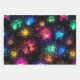Eleganter Regenbogenfeuerwerk auf schwarzem Hinter Geschenkpapier Set