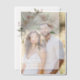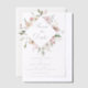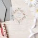 Ein elegantes Blumenstrauß mit rosa Torfbäumen und elfenbeinfarbenen Blume aus Wasserfarbe umrahmen diese wunderschöne Blumenzwiebelhochzeit Save the Date durchsichtig mit Goldschrift. Inmitten der pfirsichfarbenen Blume, die die wunderschöne Typografie umgeben, schmücken die Blätter der Salbei.