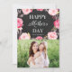 Feiern Sie den besonderen Tag Ihrer Mutter, indem Sie ihr eine schöne Mutter-Tag-Fotokarte geben! Die Tagskarte der eleganten Mutter verfügt über einen Chalkboard-Hintergrund, rosa Blumenkranz, Happy Mother's Day in einem schicken Skript-Schriftart und Platzhalter für ein Foto und einen benutzerdefinierten Text.