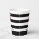 Eleganter rosa Flamingo Schwarz-Weiß Streifen Name Pappbecher