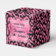 Rosa und schwarz leopardenfarbene Muster 2" quadratische Greifkästen mit der Danksagung auf der Vorderseite auf rosa Imitat-Folie in schicker Schrift. Schöne zum Geburtstag Party Gefälligkeitsboxen und mehr. PASSENDE Artikel in unserem Geschäft.