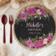 Eleganter rosa Lila floraler Glitzer Schwarzer Geb Pappteller