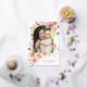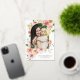 Elegante, blumengeschmückte Muttertagskarte mit Ihrem Foto in einem Bogen, der von rosa Aquarellbäumen, Rose, Dahlien und Hydrangeas mit lebhaften grünen Blätter gerahmt ist. Personalisieren Sie die Vorderseite der Karte mit Ihrem persönlichen Gruß und Namen(en) in Goldfolienschrift. Im Inneren der rosa Peony Mother's Day Card wird ein zusätzliches Foto mit Platz für eine typisierte oder handgeschriebene Nachricht angezeigt.
