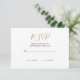 Auf der Rückseite dieser RSVP-Karte befindet sich eine elegante Palme. Elegantes modernes formales Hochzeitsdesign. Die Informationen auf der Rückseite können leicht auf Ihre geändert werden, die Wörter auf Ihre eigenen geändert. Das moderne Skript kann leicht für Ihre eigenen Informationen geändert werden. Eine einfache Idee, damit Ihre Gäste Ihre Hochzeitseinladungen einfach und schnell beantworten können. Elegantes modernes formales Hochzeitsdesign.