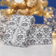 Elegantes Verpackungspapier mit schwarzem Damast-Muster auf weißem Hintergrund