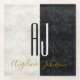 Moderner, eleganter, schwarz-weißer Marmor in Kombination mit riesigen individuellen Initialen - Monogramm und goldener Vollname am Ende. Stilvolle, zeitgenössische, elegante Untersetzer aus Glas.
