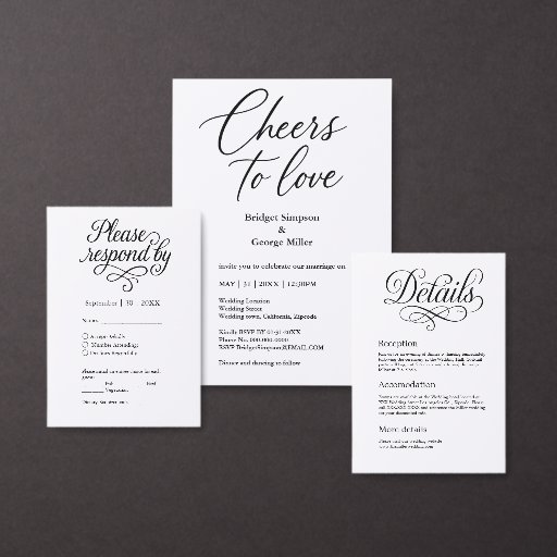 eleganter schwarz-weißer Typografie-Charme RSVP Karte