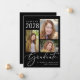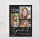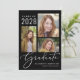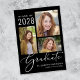 Elegante Schwarz-Abschluss-Ankündigung mit einer 3-Bild-Foto-Collage und "Graduate" in einem stilvollen weißen Skript. Fügen Sie den Namen, das Klassenjahr und die Schule oder Universität in der modernen weißen Typografie.