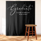 Eleganter schwarzer Hintergrund und Foto-Wandstütze für Ihre Abschlussfeier mit "Graduate" in einem schicken, modernen, weißen Drehbuch und dem Namen und der Klasse Jahr des Absolventen in schlichter moderner weißer Typografie.