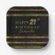 Geburtstagsparty Teller aus Schwarz und Gold. Mit atemberaubenden goldenen Streifen aus dem Glitzer und goldenem Geburtstagstext auf schwarzem Hintergrund. Einfach zu anpassen und auf jedes gewünschte Alter zu ändern.