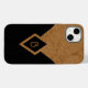Monogram Black and Tan © Sunny Mars Designs. Eleganter, eleganter, stilvoller, beruflicher Case-Mate-Case-Cover mit abstrakt antikem Papier, Stoff oder Leder und schwarzem Nadelstreifen und Diamantform. Personalisieren Sie es, indem Sie Ihren eigenen Brief hinzufügen.
