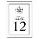 Eleganter schwarz-weißer Kronleuchter Altes Geld formelle Hochzeitskarte Tischnummer. Mit dieser eleganten, schwarz-weißen Kronleuchtern-Tischnummer, die das Wesen der Old Money-Eleganz verkörpert, verleihen Sie Ihrem Hochzeitsfest ein angenehmes Ambiente. Das Design präsentiert einen Vintag inspirierten schwarzen Kronleuchter, der elegant über Ihrem personalisierten Text positioniert ist und gerahmt in einem raffinierten dreileiligen schwarzen Rahmen liegt, der seinen klassischen Reiz noch verstärkt. Diese exquisite Karte fügt Ihrer Hochzeitsfeier eine Touch zeitlosen Charmes hinzu.