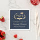 Elegant dunkelblaue Graduiertenservietten mit "Class of" in einer hellen goldenen Illustration von Lorbeerkranz mit Gradmütze und Diplom, dem Namen des Absolventen in einem stilvollen, hellen goldenen Drehbuch, und "Gratulationen" und ihrem Schulnamen in moderner leichter Goldtypografie.