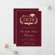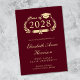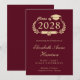 Moderne bordeauxrote Uni-Abschluss-Ankündigung mit "Class of" in einer leicht vergoldeten Illustration eines Lorbeerkranzes mit einem Grade Cap Topper und Diplom und dem Namen des Absolventen in einem eleganten, leicht vergoldeten Drehbuch. Fügen Sie ihre Schule, Hauptfach, Ehren oder künftige Pläne.