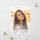 Mit dieser stilvollen Abschluss-Ankündigung kündigen Sie die Erfolge Ihres Abschlusses an. Ihr liebstes Foto füllt die Karte mit "Graduate", oben in einem eleganten Drehbuch geschrieben. Fügen Sie unten ihren Namen, Schule und Jahrgang hinzu. Fügen Sie auf der Rückseite ein zusätzliches Foto und eine personalisierte Nachricht hinzu.