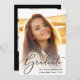 Mit dieser stilvollen Ankündigung von Black Abschluss kündigen Sie die Erfolge Ihres Abschlusses an. Ihr liebstes Foto füllt die Karte mit "Graduate", oben in einem eleganten Drehbuch geschrieben. Fügen Sie unten ihren Namen, Schule und Jahrgang hinzu. Auf der Rückseite fügen Sie ein zusätzliches Foto und eine personalisierte Botschaft in modernen weißen Schriften.