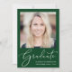 Feiern Sie Ihren Abschluss mit dieser grünen Abschluss-Ankündigung mit "Graduate" in einer eleganten weißen Schrift, ihr Foto und ihren Namen, Schule und Klasse Jahr in schlicht modernen weißen Typografie.