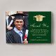 Eleganter grüner Abschluss Dankeschön-Karte mit einem goldenen Gradmütze, ein Foto des Absolventen, "Danke" in einem klassischen Goldskript, und Ihr Dankeschön-Nachricht und den Namen des Absolventen in der modernen Serif Gold Typografie.