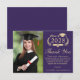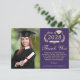 Moderner lila Abschluss Dankeschön-Karte mit "Klasse der" in einer leichten goldenen Illustration des Lorbeerkranzes mit einem Graduiertenkappen und Diplom, ein Foto des Absolventen, "Danke" in einem eleganten, leicht goldfarbenen Drehbuch, und eine individuelle Danksagung und den Namen des Absolventen in leichter Goldtypografie.