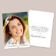 Eleganter Abschluss Dankeschön-Karte mit dem Foto des Absolventen überlagert mit "Dankeschön" in einem stilvollen Drehbuch und ihren Namen, Schule und Klasse Jahr in der einfachen Typografie. Auf der Rückseite personalisieren Sie eine Danksagung und fügen den Namen des Absolventen in ein signaturähnliches Skript hinzu.