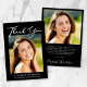 Eleganter schwarzer Abschluss Dankeschön-Karte mit dem Foto des Absolventen, "danke" in einem stilvollen weißen Drehbuch und ihren Namen, Schule und Klasse Jahr in der einfachen weißen Typografie. Fügen Sie auf der Rückseite ein zusätzliches Foto hinzu, personalisieren Sie Ihre Dankeschön-Nachricht und fügen Sie den Namen des Grads in ein signaturähnliches Skript ein.