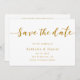 Diese elegante Hochzeitskarte in Weiß und Gold rette dem aktuellen Stand der Technik und eignet sich ideal für eine moderne Hochzeit. Das schlichte Design zeichnet sich durch elegante Goldkalligraphie auf einem sauberen, weißen Hintergrund aus. Die Karte enthält auch einen QR-Code für die Hochzeitswebsite auf der Rückseite.