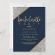 Ein elegantes, modernes, goldenes und silbernes Glitzer mit schicken geometrischen Formen und bedruckten Imitaten mit handgeschriebener Typografie auf marinebasischem Hintergrund. Dieser glamouröse Hochzeitszug-Junggeselinnen-Abschied ist der perfekte Ausdruck für jede Braut- und Bräutigam-Hochzeitsveranstaltung. Passen Sie dieses Design mit Ihren Details und Monogramm Initial an.