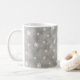 Diese festliche Kaffeemaschine-Tasse zeichnet sich durch ein niedliches Weihnachtsmuster mit weißen Sternen und Schneeflocken auf Imitaten mit silberfarbenem Glitzer aus. Ideal für Weihnachten und Winter Geburtstagsgeschenke.