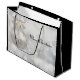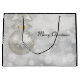 Eine große Geschenktasche mit einem magischen Urlaubsdesign. Mit einem silbernen Weihnachtsball mit Schneeflocken dekoriert und mit einem hübschen Silberbogen fertig. Der Hintergrund ist eine silberne Lichtillustrierung mit eleganten Sternen verstreut.