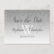 Diese schicke, Save the Date Postkarte zeigt ein Imitat silberne Glitzer ombre Hintergrundbild. Die Wörter "Save the Date", die Namen der Braut und des Bräutigams und das Hochzeitdatum erscheinen in elegantem dunkelgrauem handgeschriebenem Schriftsatz mit einem weißen Monogramm, das in Serif-Schriftart initiiert wurde. Passen Sie die Rückseite mit Ihrer Rücksendeadresse und weiteren Details an.