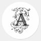 Eleganter Viktorianischer Style Letter A Monogram Runder Aufkleber