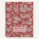 Vintages dunkelrotes Foto de jouy gedrucktes Notebook. Dieses Vintage romantische Toile-de-jouy-Muster wird durch die exquisiten Entwürfe französischer Landschaftsbilder inspiriert. Diese ausgeklügelten Toile-Drucke sind im Moment ein Alltagswut, schöne Designs, die jedem Gegenstand natürliche Schönheit verleihen. Sie verbinden traditionellen Charme und zeitgenössischen Stil.