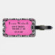 Dieser einzigartige, elegante Gepäckanhänger kennzeichnet eine KunstDeko Diamantform auf der Front in Schwarzem, im Weiß und im Rosa. Er lässt einen schwarzen Blathintergrund machen, um wie Zebradruck und -raum nach Ihnen zu suchen, zum Ihres Monogramms zu addieren. Die Rückseite hat einen größeren rechteckigen Entwurf und einen Raum, damit Sie Ihren Namen, Adresse und Telefonnummer addieren. Dieses würde einen stilvollen Umbau für jedermann machen, das etwas nach einem Retro Blick der Weinlese sucht.