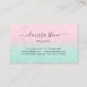 Hübscher Geschäftskartenentwurf, der Imitat Minze und RosengoldGlitterbeschaffenheit und eleganter Kalligraphie-Schriftart kennzeichnet.