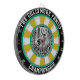 Zirkuläre Gestaltung eines Hirsches mit Geweih in einem friedlichen Wald, mit einem Ziel betont.