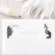 Ein handgemalter Wasserfarbenpfau, der in klassisch schwarz-weiß dargestellt ist und auf einem eleganten Rückadresslabel gestaltet wurde