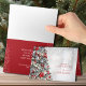 Ein wunderschön dekorierter Weihnachtsbaum mit einem Gruß auf der Vorderseite und Ihrer Personalisierung und Namen auf der Innenseite.