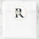 Eleganter White Floral Monogram Letter R auf Weiß Runder Aufkleber
