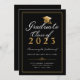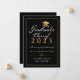 Mit dieser eleganten, individuellen 2021 Graduiertenankarte kündigen Sie Ihren Uni-Abschluss stilvoll an. Dieses formale Typografie-Design enthält die Worte Graduate Class of 20XX mit Ihrem Abschluss, Namen, Schule, und Datum, um personalisieren in Gold-und Weiß-Skript durch ein Imitat Gold Graduate Cap und in Gold auf einem schwarzen Hintergrund gerahmt. Die Rückseite der Karte ist schwarz. Entworfen von Susan Coffey.