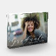 Eleganter Acrylblock-Abschluss-Sake mit Ihrem Lieblings-Foto, Ihrem Namen, Klasse und Graduate in schicken weißen Buchstaben. Ideal für sich selbst oder als Geschenk für Eltern und Großeltern.