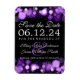 Elegantes Winterhochzeitdesign "Save the Date" mit Lila Lichtern, Schneeflocken und Glitzern, individuellen Namen und Datumsangaben.